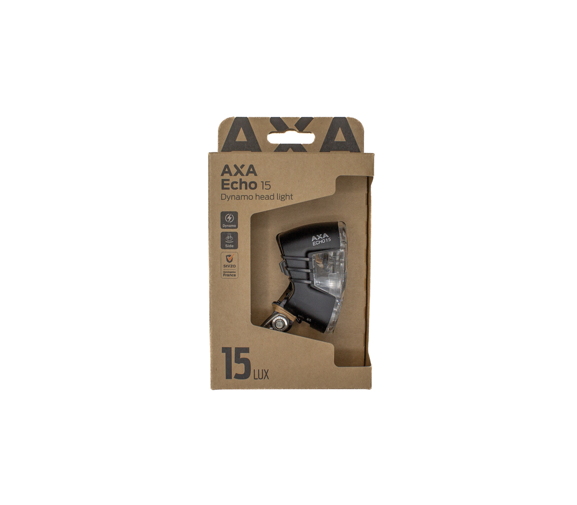 De AXA Echo 15 is een universeel toepasbare dynamo koplamp met een lichtopbrengst van 15 lux.