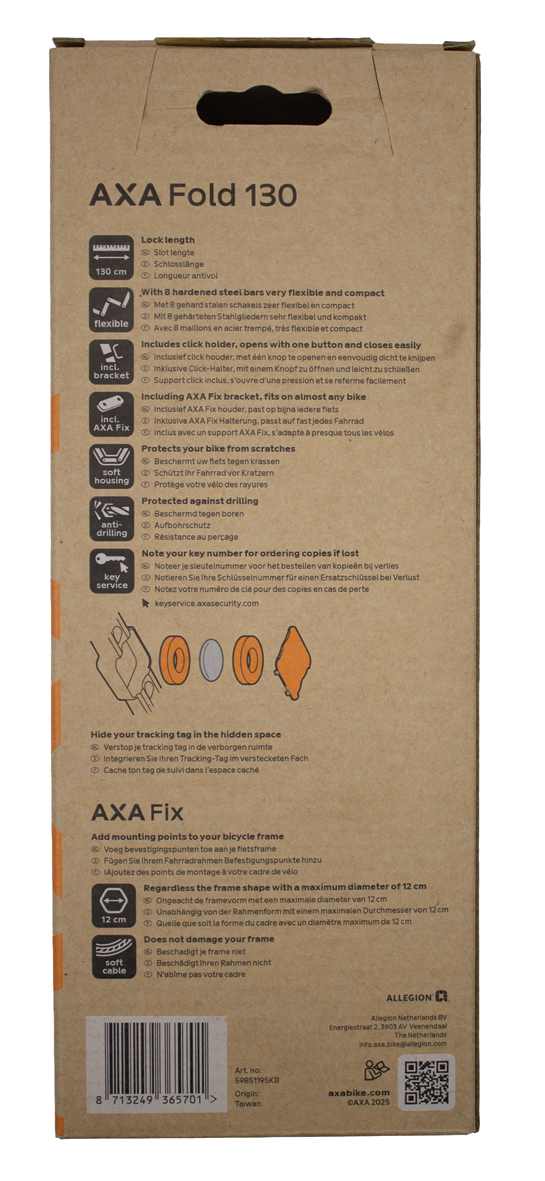 Suitable for all cyclists looking for a straightforward solution for everyday use, the AXA Fold offers reliable safety and simple operation, combining protection, comfort and a sleek design.