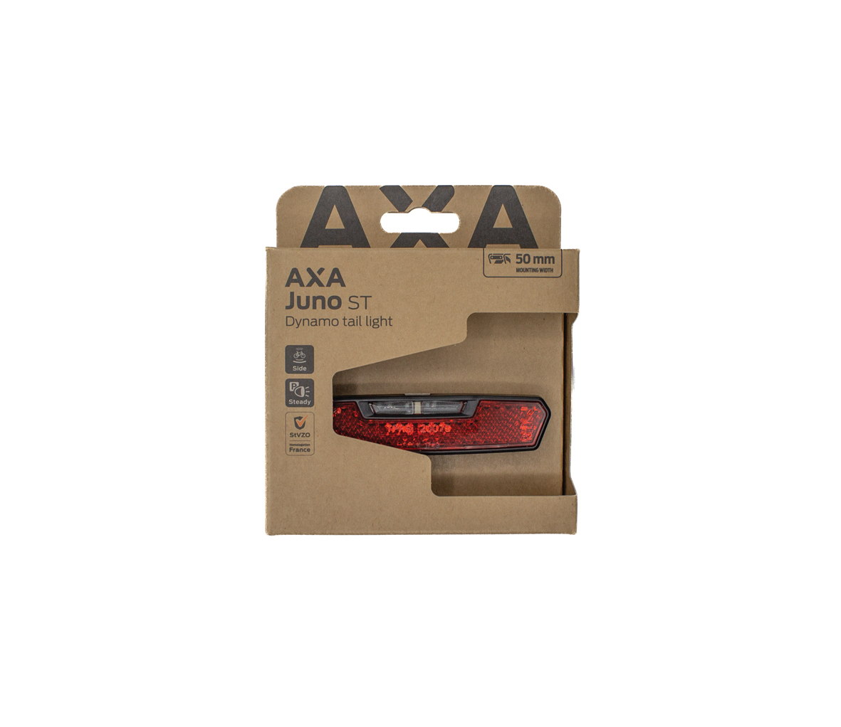 The AXA Juno Dynamo is a very compact rear light. The smart design offers also light from the side, which makes you better visible to crossing traffic.